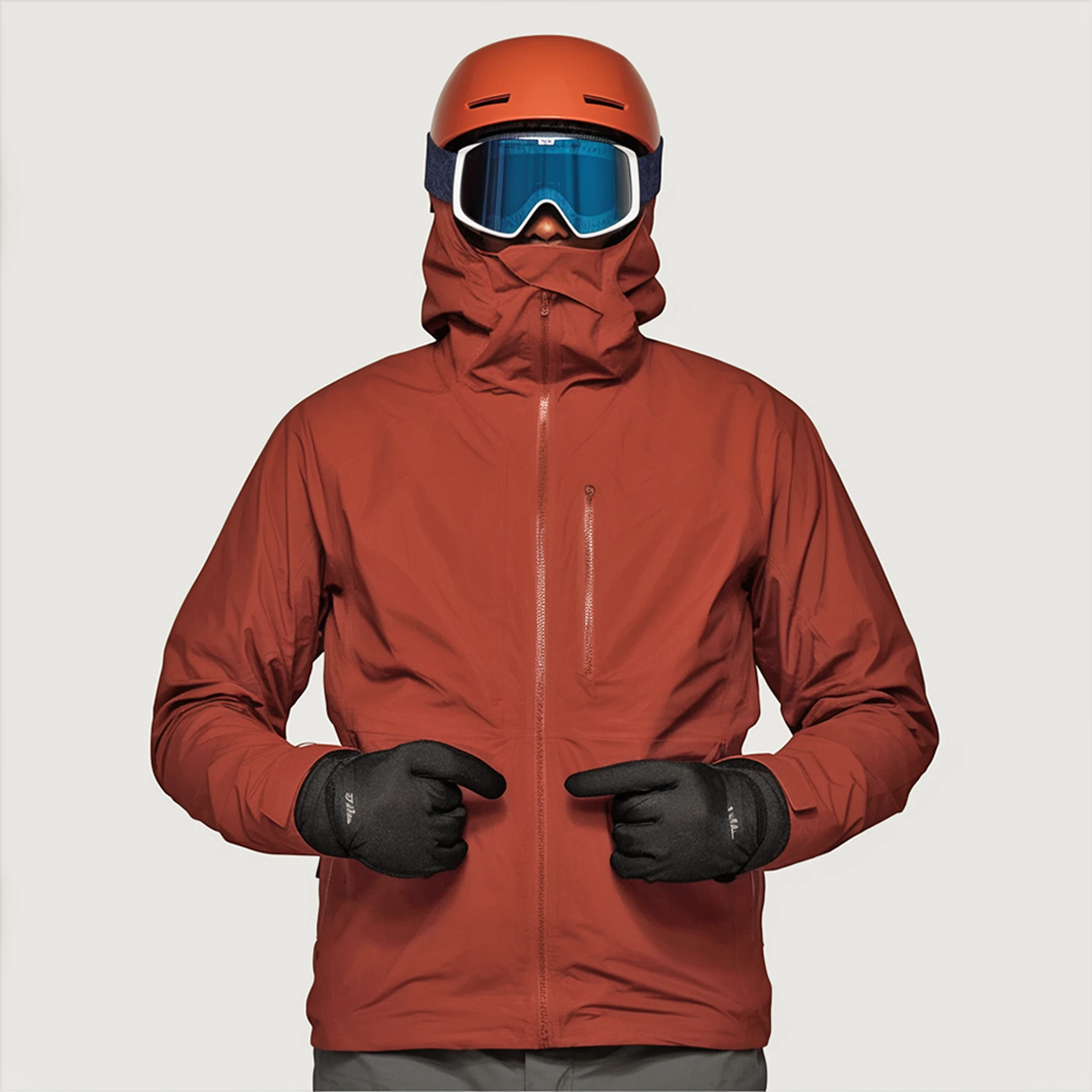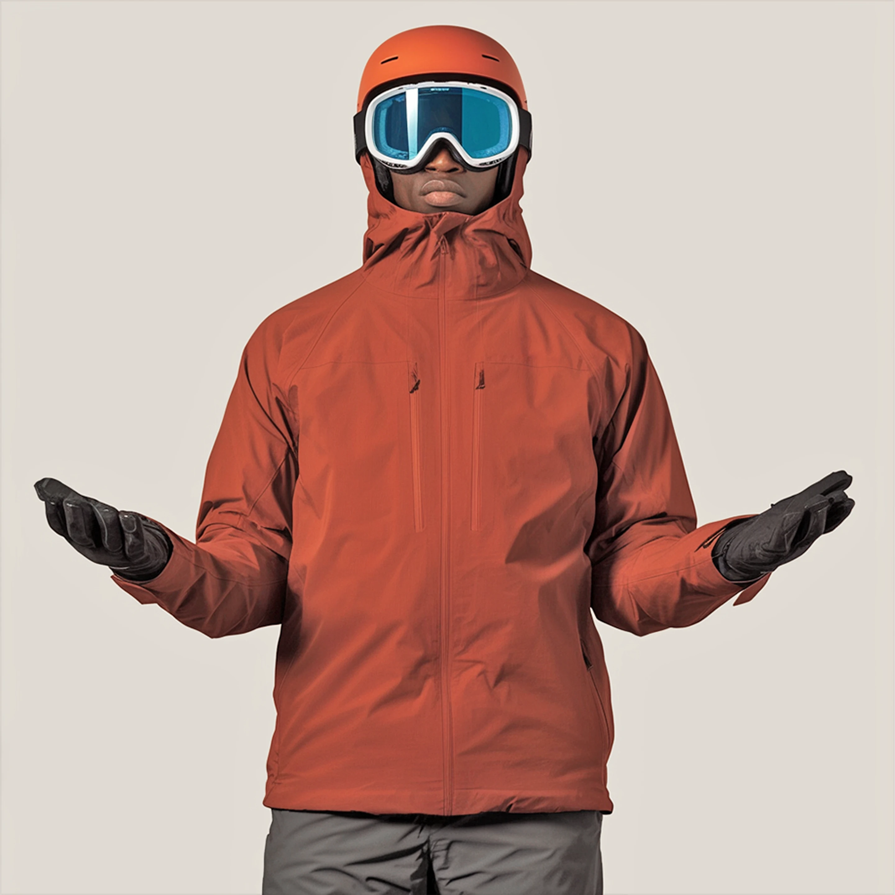 Warm insulated orange ski jacket—windproof, water-resistant, ideal for harsh winter mountain conditions.